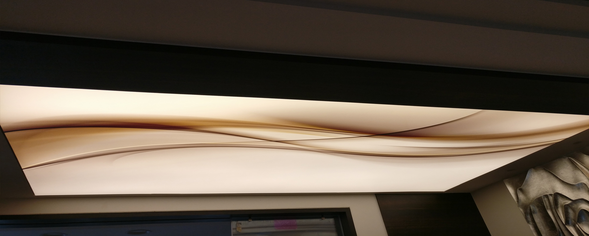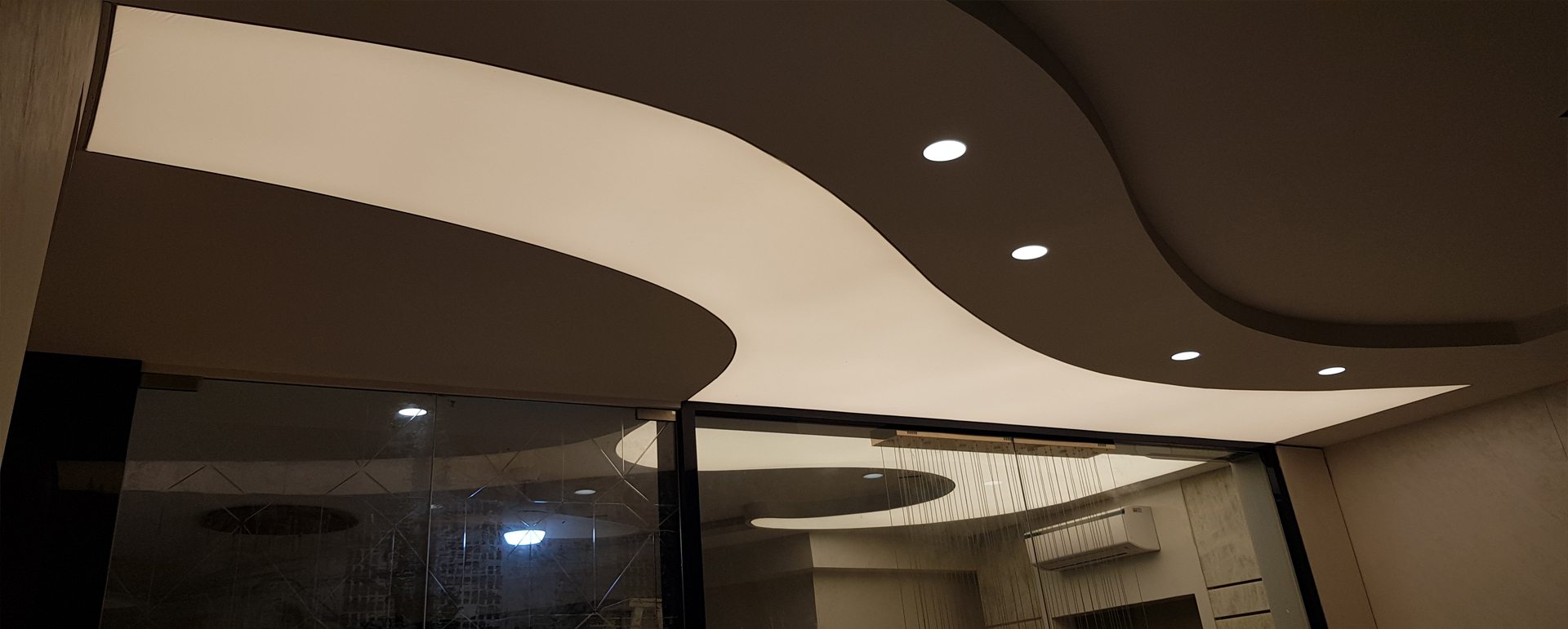 Stretch Ceiling Is An Exclusive Interior Product, It Is A Pvc Tensile Film Which Is Heated And Stretched. It Is Attractive Due To Its Fully Uniform Illumination After The Light Source Is Switched On And Even Its Good Look When The Light Source Is Kept Off.