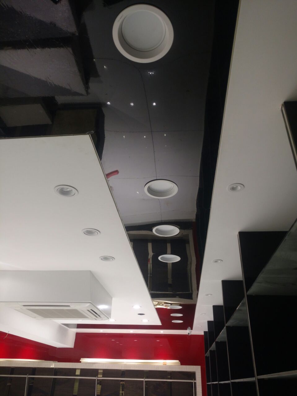 Glossy stretch ceiling is the best solution for the problems faces to install glass or other reflecting...